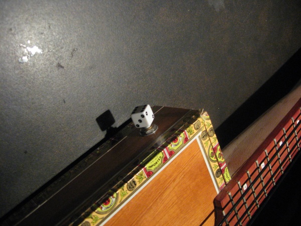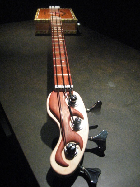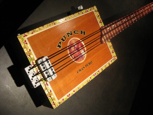 The B3 cigar box guitar features black polyurethane cord from Owen over at Road Toad Music. It's amplified using a 10mm peizo button and the same pre-amp & volume control that I built for the previous instrument.