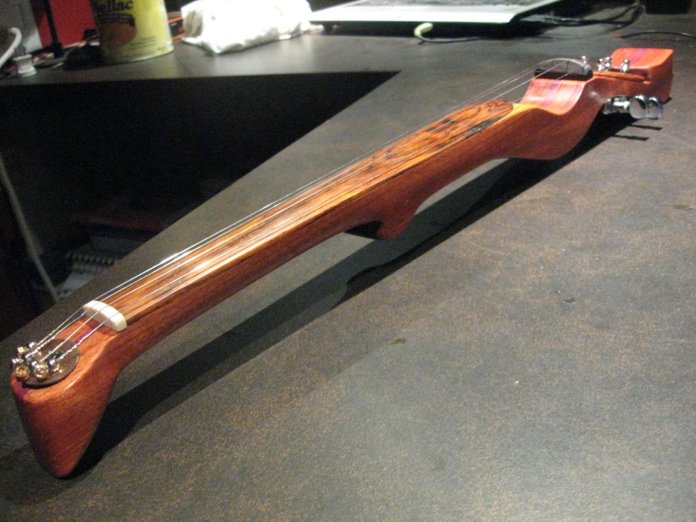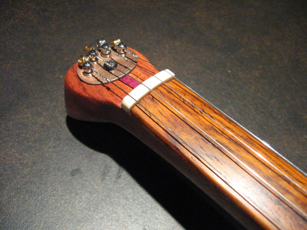 I like your solution for a headless violin. I am in the middle of an electric violin project for my daughter, and have been trying to come up with a good solution for the head. This gives me something more to think about.